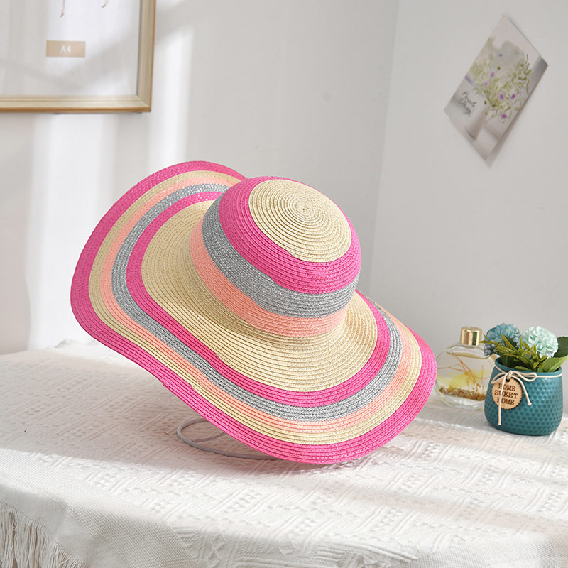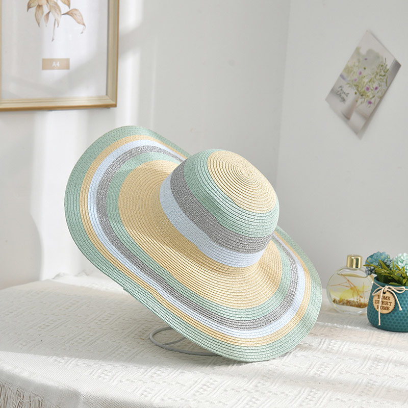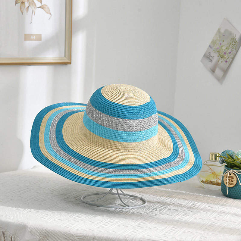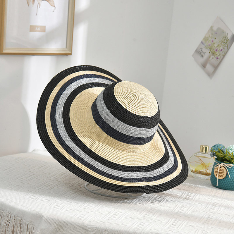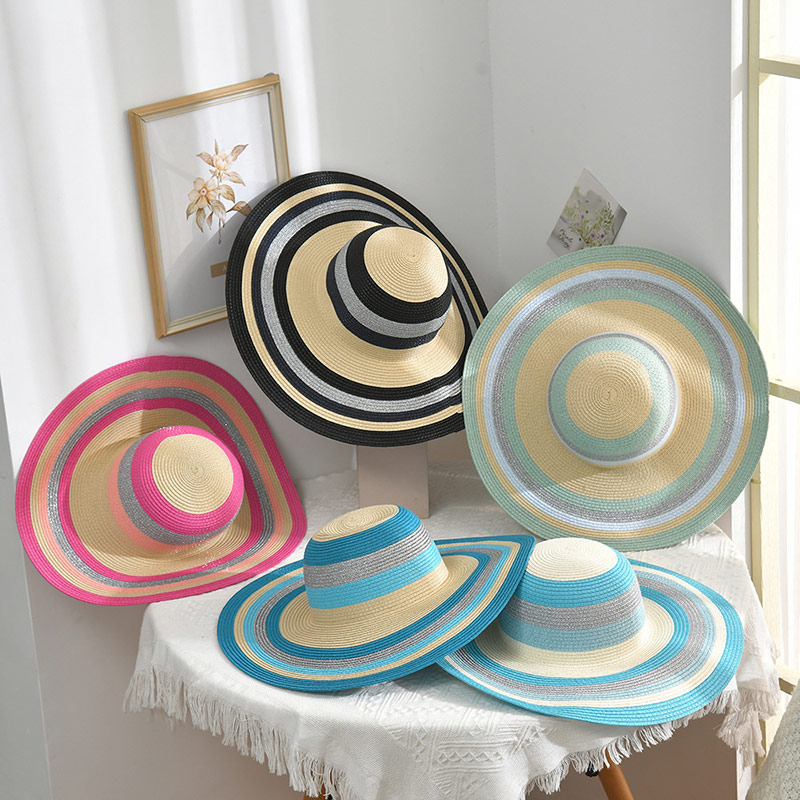 Оптовая женская элегантная полосатая пляжная шляпа на дискетах |